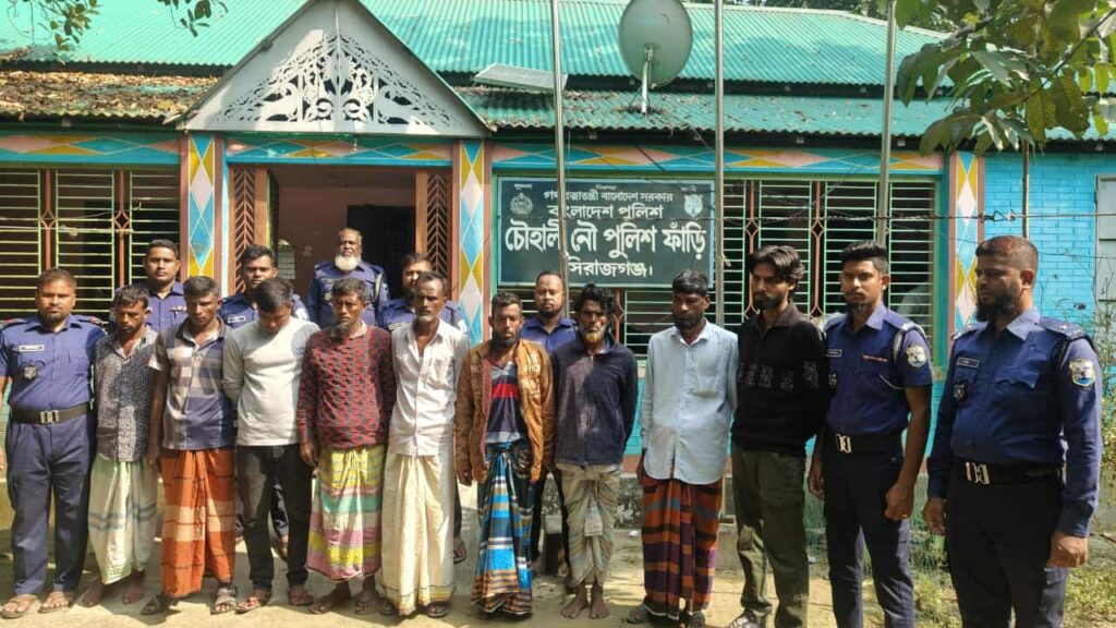চৌহালীতে নৌযান থামিয়ে চাঁদাবাজি, ইউপি সদস্য ও ছাত্র সমন্বয়ক সহ চক্রের ১০ সদস্য আটক