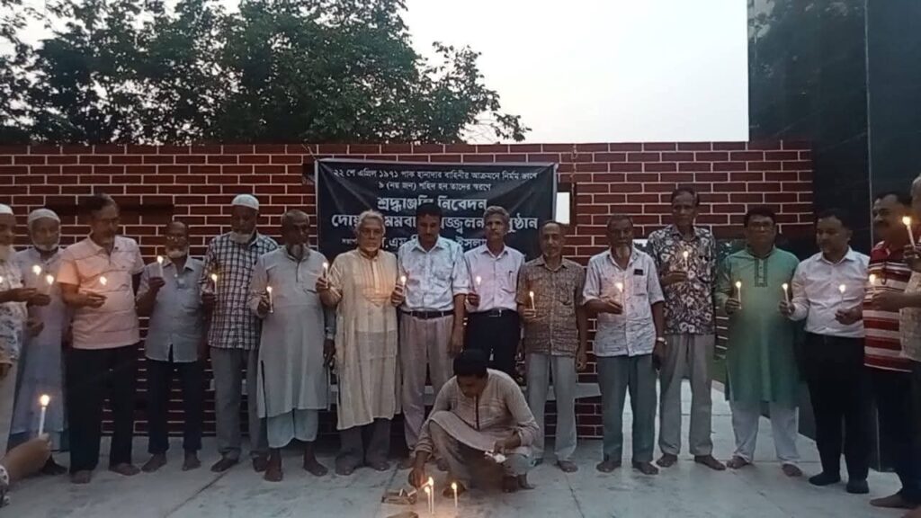 নওগাঁর ধামকুড়ি গণহত্যার শহিদদের প্রতি শ্রদ্ধাঞ্জলি নিবেদন করে আলোচনা সভা ও মোমবাতি প্রজ্জলন