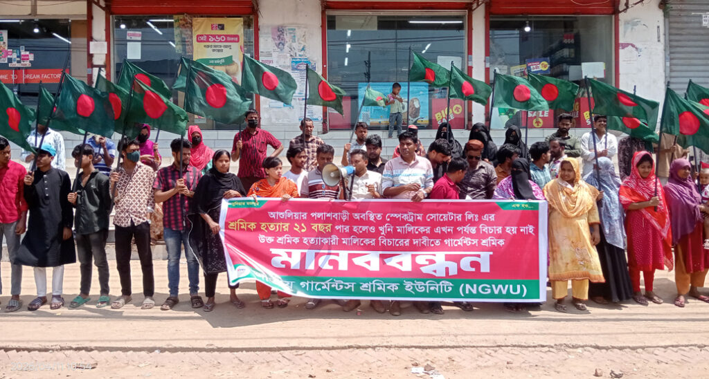 স্পেকট্রাম ট্রাজেডির ২১ বছরেও বিচার হয়নি: আশুলিয়ায় শ্রমিকদের মানববন্ধন