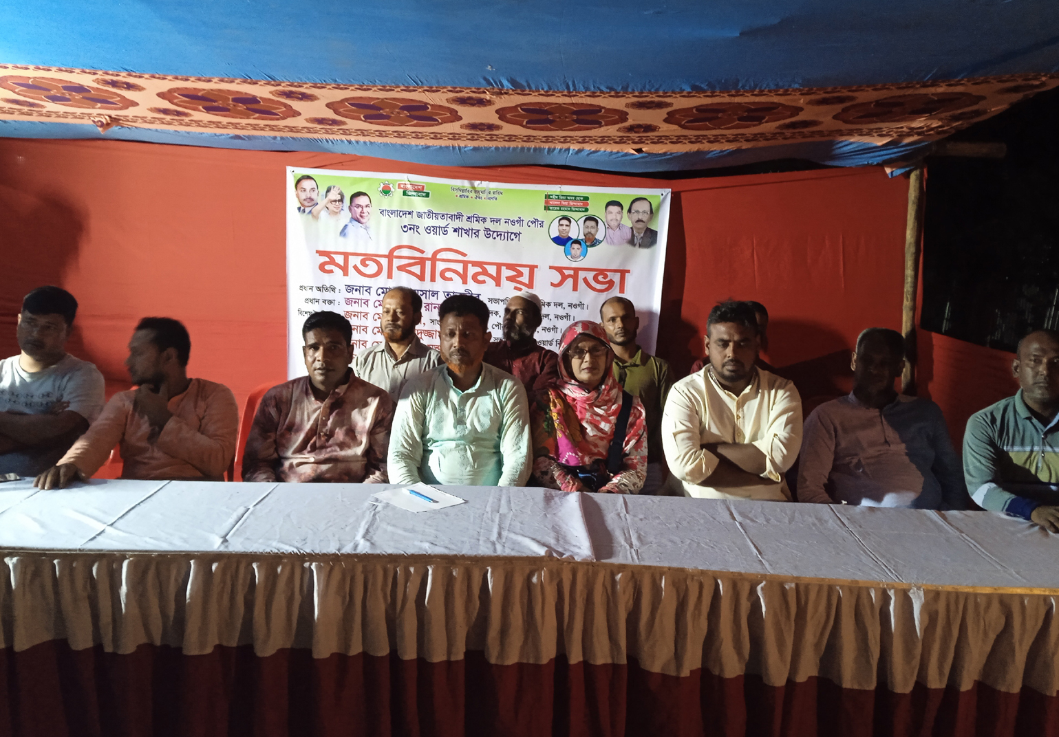 জেলা শ্রমিক দলের সভাপতি মিনার উদ্দিন মিনারের সভাপতিত্বে মতবিনিময় সভায় বক্তব্য রাখেন বিএনপির কেন্দ্রীয় কমিটির সহশ্রম বিষয়ক সম্পাদক হুমায়ুন কবির খান, জেলা বিএনপির সাবেক সহ সভাপতি হযরত আলী মিলন, জেলা পরিবহন শ্রমিক ইউনিয়নের যুগ্ন সাধারন সম্পাদক দেওয়ান জসিম উদ্দিন, আলহাজ উদ্দিন যুবরাজ প্রমুখ।