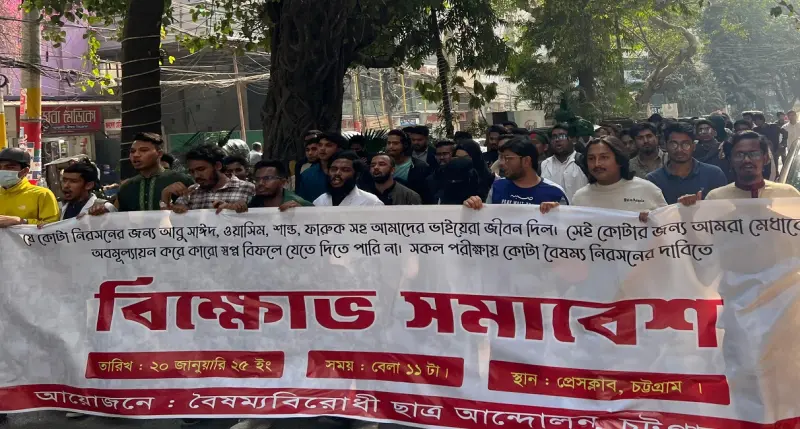কোটা ইস্যুতে আবারও আন্দোলনে চট্টগ্রামের শিক্ষার্থীরা