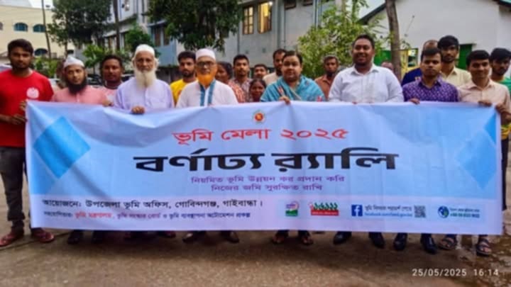 গোবিন্দগঞ্জ প্রতিনিধি: “নিয়মিত ভূমি উন্নয়ন কর প্রদান করি, নিজের জমি সুরক্ষিত রাখি” প্রতিপাদ্য নিয়ে গাইবান্ধার গোবিন্দগঞ্জে তিন দিনব্যাপী ভূমি মেলা ২০২৫ উদ্বোধন ও সচেতনতামূলক সভা অনুষ্ঠিত হয়েছে। রবিবার (২৫ মে) সকালে উপজেলা ভূমি অফিস প্রাঙ্গণে এ সেবা সপ্তাহের উদ্বোধন করেন উপজেলা নির্বাহী কর্মকর্তা (ইউএনও) সৈয়দা ইয়াসমিন সুলতানা।