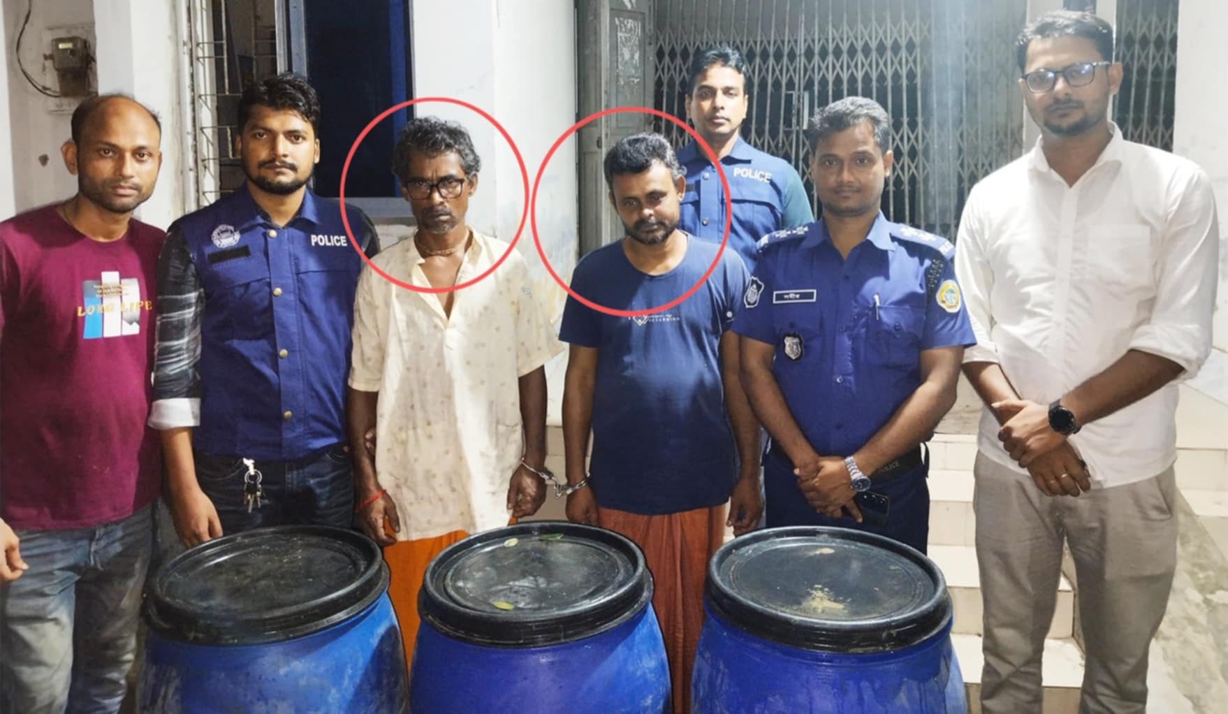 আগৈলঝাড়ায় বিপুল পরিমাণ চোলাইমদসহ দুই মাদক ব্যবসায়ী গ্রেপ্তার