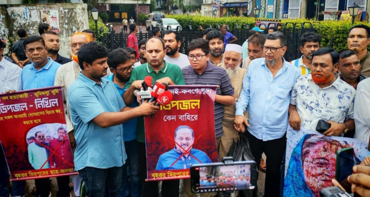 মিরপুরের আওয়ামী লীগের অর্থদাতা ভূমিদস্যু ছাত্র হত্যা মামলার আসামি ডিপজলের গ্রেফতারের দাবিতে ছাত্র জনতার মানববন্ধন