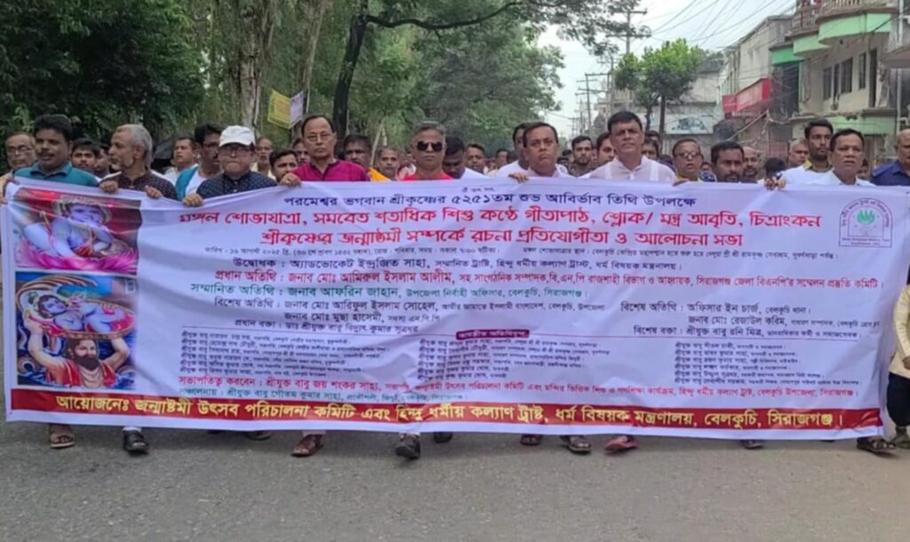 বেলকুচিতে পরমেশ্বর ভগবান শ্রীকৃষ্ণের জন্মাষ্টমী উপলক্ষে শোভাযাত্রা ও সমবেত শতাধিক শিশু কণ্ঠে গীতাপাঠ