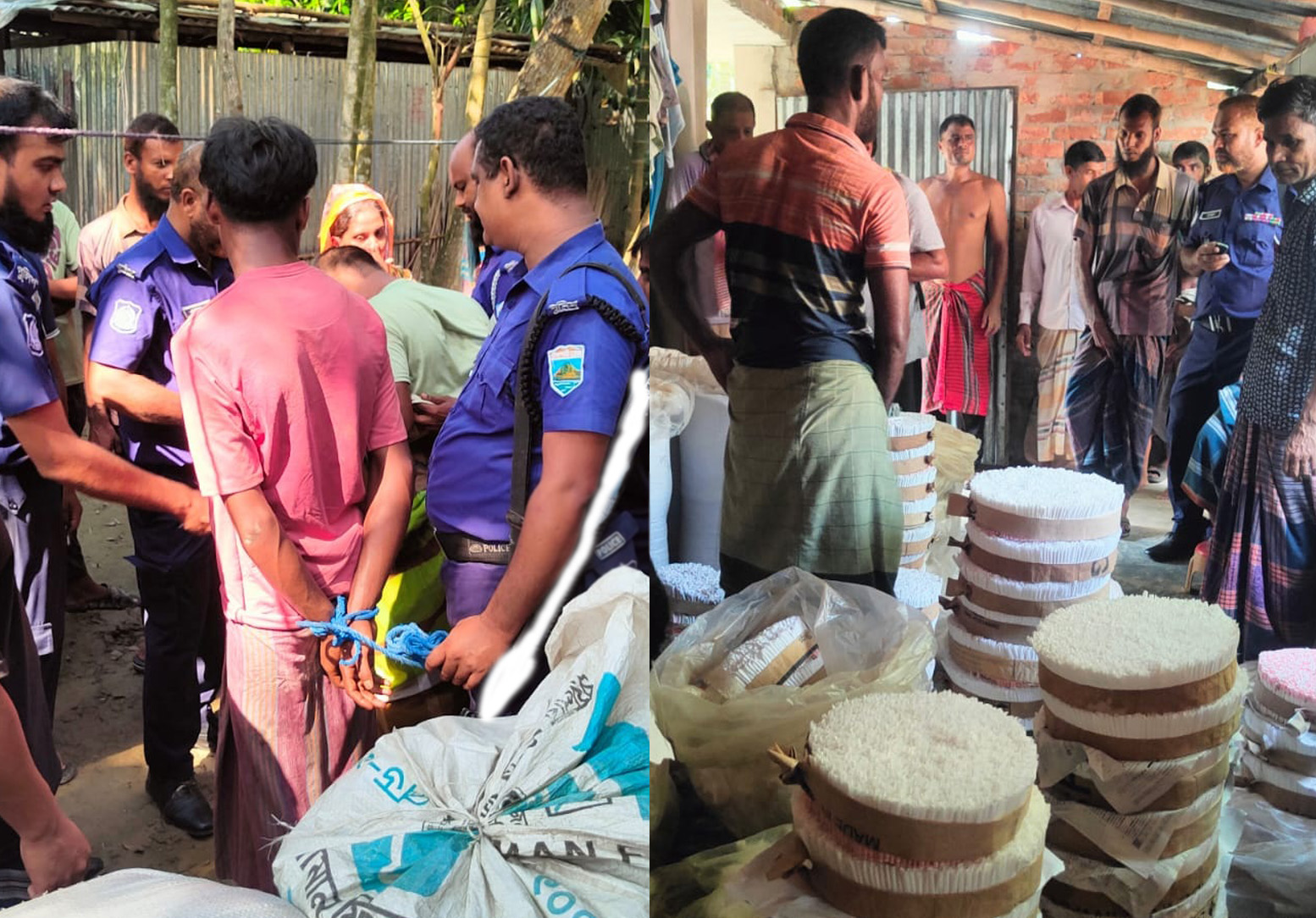 সোমবার (১ সেপ্টেম্বর) দুপুরে উপজেলার ফাগুয়াড়দিয়াড় ইউনিয়নের উপর হাটদৌল এলাকায় সওদাগর আলীর বাড়িতে গোপন সংবাদের ভিত্তিতে এ অভিযান চালানো হয়। অভিযানে সওদাগর আলী (পিতা: পিয়ার আলী) ও আব্দুল মানিক (পিতা: আব্দুল মালিক, গ্রাম: শাইলকোনা) কে আটক করা হয়।