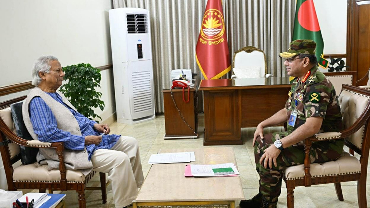 সাক্ষাৎকালে প্রধান উপদেষ্টা বর্তমান পরিস্থিতিতে বেসামরিক প্রশাসনকে সহায়তা করার ক্ষেত্রে সেনাবাহিনীর ভূমিকা নিয়ে আলোচনা করেন। আইনশৃঙ্খলা রক্ষায় অব্যাহত অবদানের জন্য তিনি সেনাবাহিনীকে ধন্যবাদ জানান।