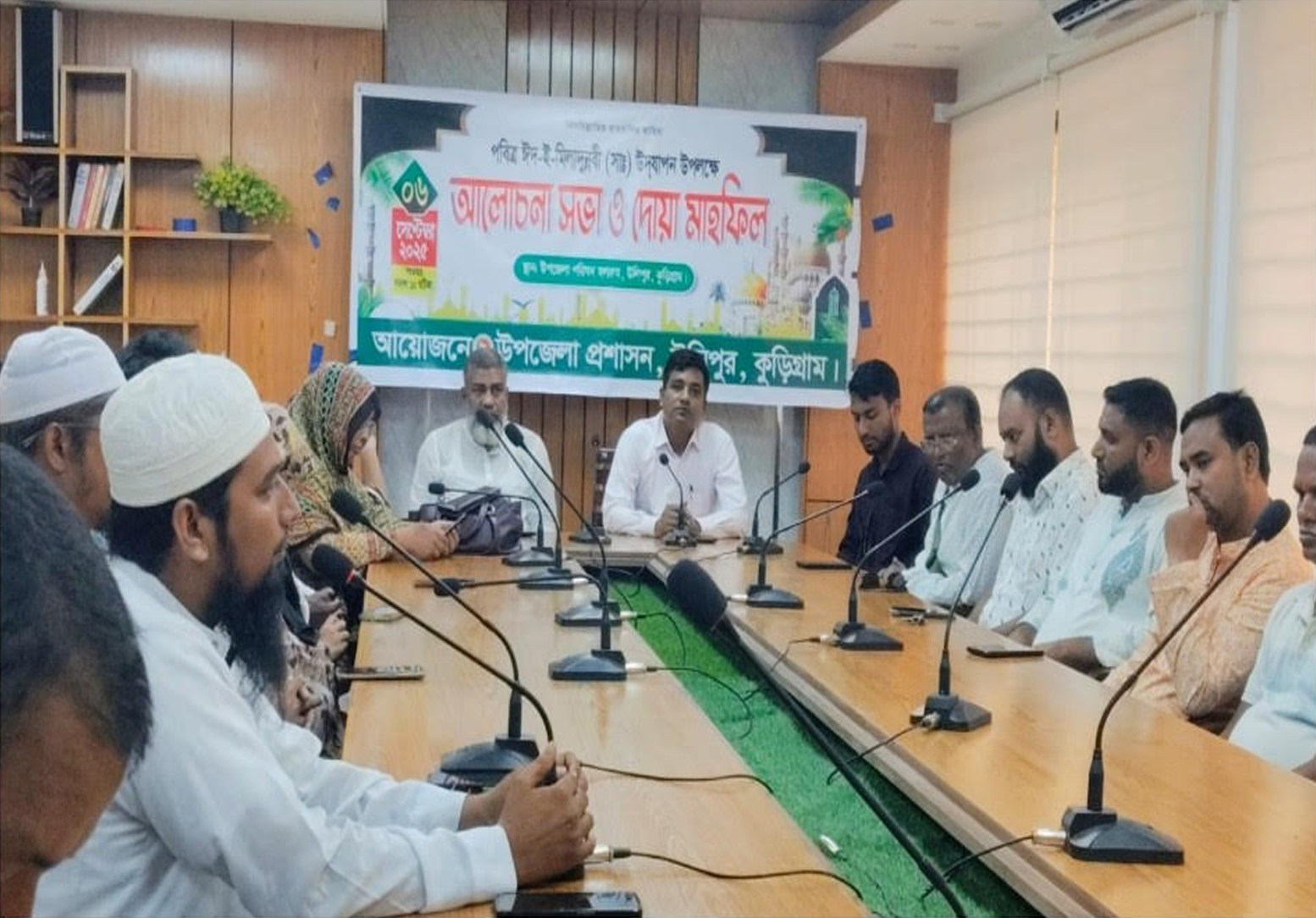 উলিপুর কুড়িগ্রাম প্রতিনিধি: পবিত্র ঈদে মিলাদুন্নবী (সা.) উদযাপন উপলক্ষে কুড়িগ্রামের উলিপুর উপজেলা প্রশাসনের উদ্যোগে আলোচনা সভা ও দোয়া মাহফিল অনুষ্ঠিত হয়েছে।শনিবার (৬ সেপ্টেম্বর ২০২৫) সকালে উপজেলা পরিষদ হলরুমে এ অনুষ্ঠান অনুষ্ঠিত হয়।