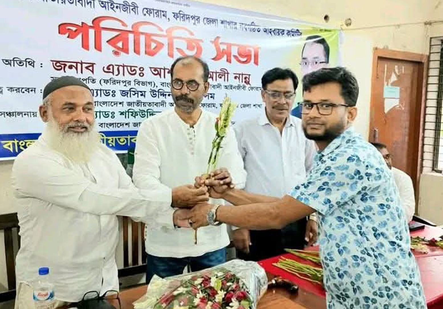 আলমগীর কবির, আলফাডাঙ্গা (ফরিদপুর)প্রতিনিধি: ফরিদপুরে জাতীয়তাবাদী আইনজীবী ফোরামের জেলা শাখার নবগঠিত আহ্বায়ক কমিটির পরিচিতি সভা অনুষ্ঠিত হয়েছে।