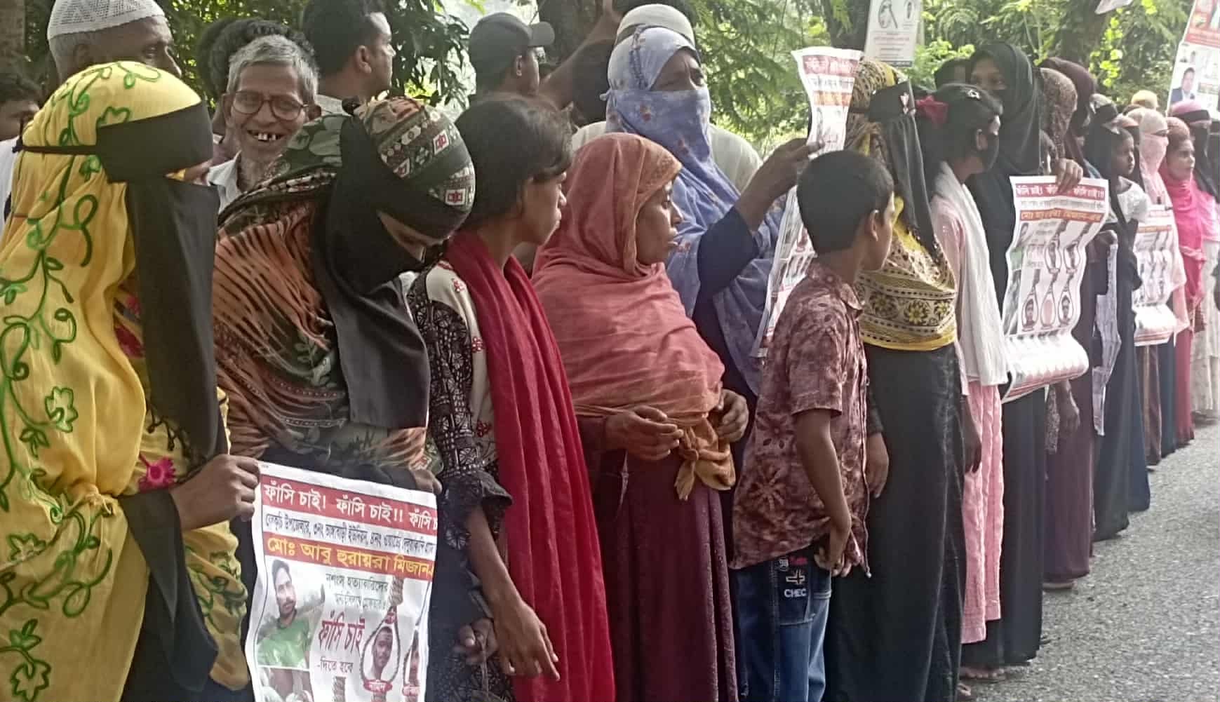 উজ্জ্বল অধিকারী: সিরাজগঞ্জের বেলকুচিতে আবু হুরাইরা মিজান (২২) হত্যার আসামিদের গ্রেপ্তারের দাবিতে সড়ক অবরোধ করে মানববন্ধন করেছেন এলাকাবাসী। শনিবার (২৫ অক্টোবর) সকালে বেলকুচি-এনায়েতপুর আঞ্চলিক সড়কের থানা সংলগ্নে আধা ঘন্টাব্যাপী এ মানববন্ধন অনুষ্ঠিত হয়। জানা যায়, গত ৮ অক্টোবর (বুধবার) মাগরিবের পর উত্তর চন্দনগাঁতী গ্রামের একদল নেশাগ্রস্ত সন্ত্রাসীরা দেশীয় অস্ত্র ও হাতুড়ি দিয়ে মিজানকে নির্মমভাবে পিটিয়ে গুরুতর আহত করে।