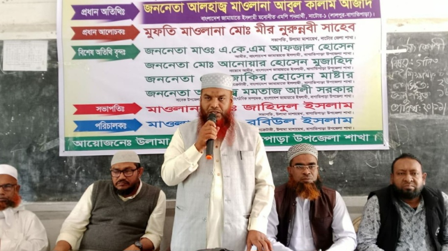 অনুষ্ঠানে সভাপতিত্ব করেন উলামা মাশায়েখ বাগাতিপাড়া উপজেলা শাখার সভাপতি মাওলানা জাহিদুল ইসলাম। সঞ্চালনা করেন সংগঠনের উপজেলা শাখার সেক্রেটারি ও জয়েন্তিপুর দাখিল মাদ্রাসার সুপার মাওলানা রবিউল ইসলাম।