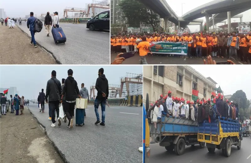 আজ বৃহস্পতিবার (২৫ ডিসেম্বর) সকাল থেকেই ৩০০ ফিট এলাকা সড়কের দুই পাশ ও মাঝখানে বিপুলসংখ্যক মানুষের অবস্থান দেখা যায়। বেলা বাড়ার সঙ্গে সঙ্গে জনসমাগম আরও বাড়তে থাকে।
