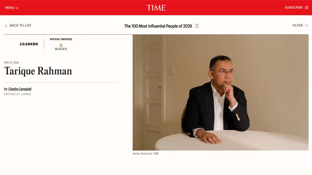 টাইম ম্যাগাজিনের প্রভাবশালী ১০০ ব্যক্তির তালিকায় তারেক রহমান