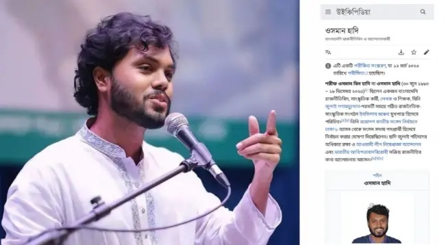 উইকিপিডিয়ায় যুক্ত হলো শহীদ ওসমান হাদির জীবনী