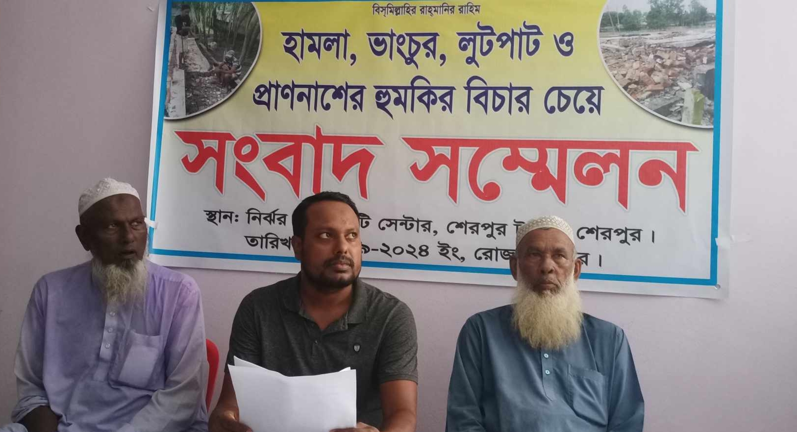 শেরপুরে হামলা, ভাংচুর, লুটপাট ও প্রাণনাশের হুমকির প্রতিবাদে সংবাদ সম্মেলন