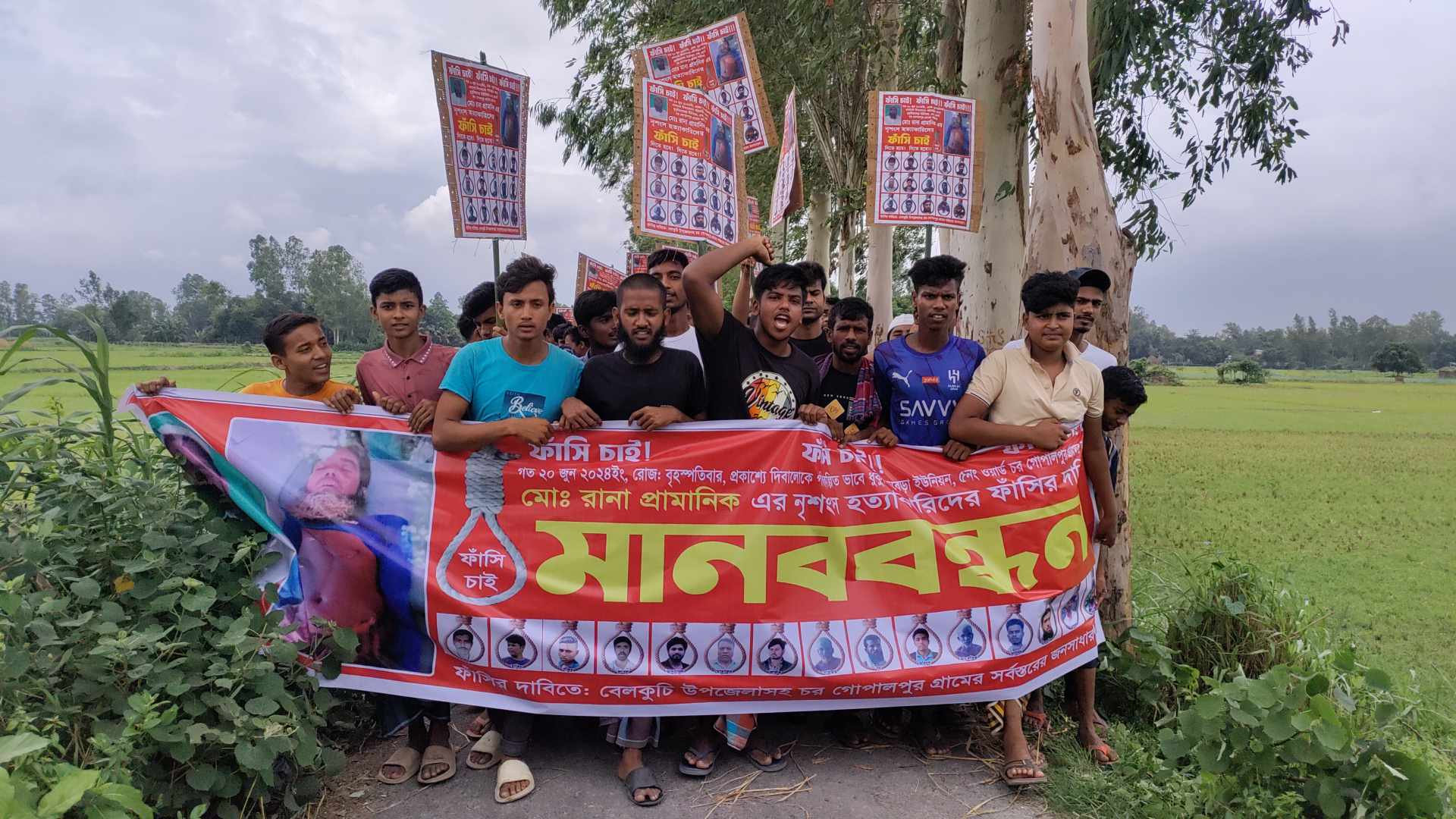 বেলকুচিতে হত্যাকারীদের গ্রেপ্তার ও ফাঁসির দাবিতে মানববন্ধন