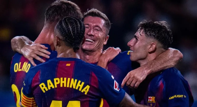 রাফিনহা, লোপেজ, লেভানদোভস্কির জোড়া গোলে বার্সেলোনার বড় জয়