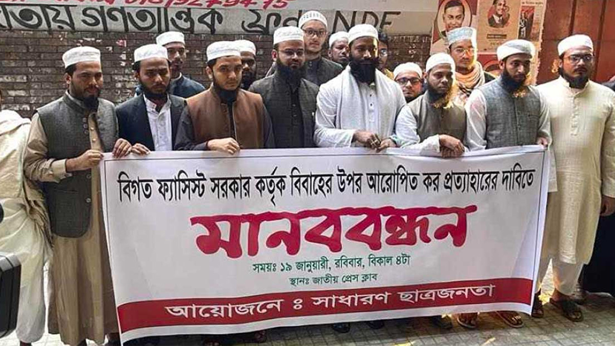 বিয়ের ওপর কর ধার্যের প্রতিবাদে রাজধানীতে মানববন্ধন