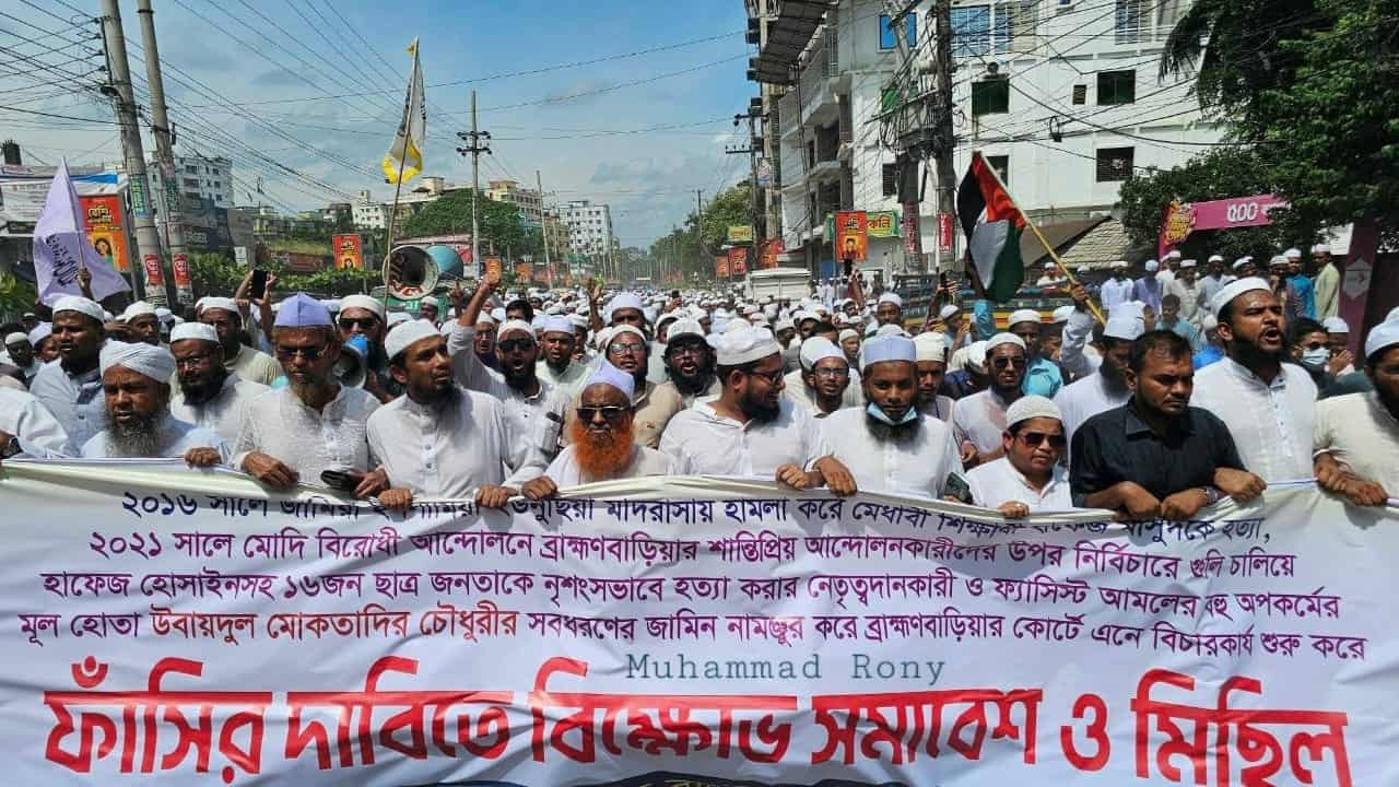 ব্রাক্ষণবাড়ীয়ায় সাবেক মন্ত্রী রবিউল মুক্তাদির চৌধুরীর ফাঁসির দাবীতে হেফাজতের বিক্ষোভ সমাবেশ