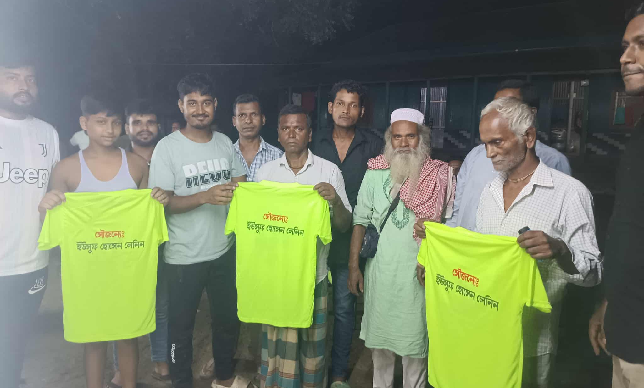 নাগরপুরে দুর্গাপূজায় সাংবাদিক ইউসুফ হোসেন লেনিনের টি-শার্ট উপহার