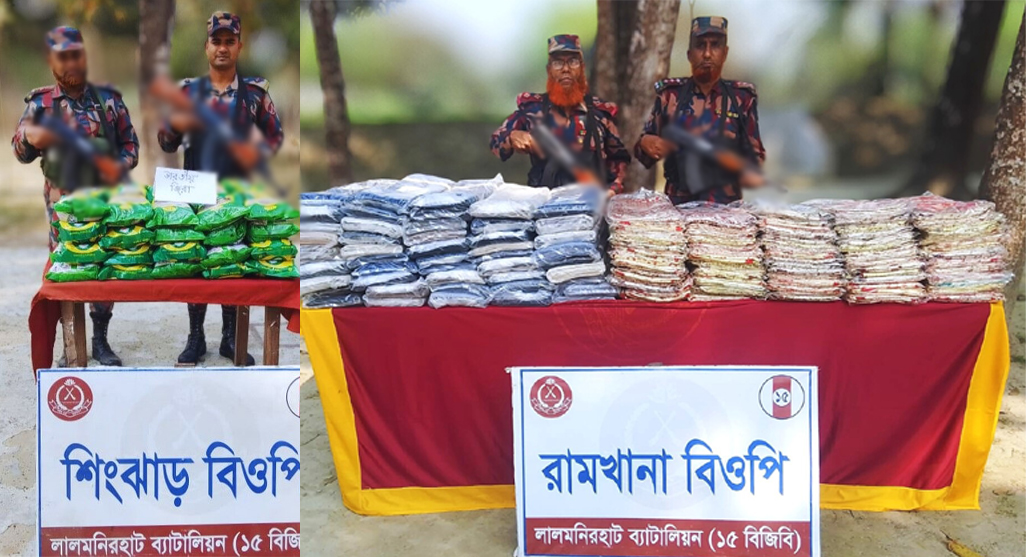 লালমনিরহাট সীমান্তে ১৫ বিজিবির অভিযানে ১৪ লাখ টাকার চোরাই ভারতীয় কাপড় ও জিরা জব্দ