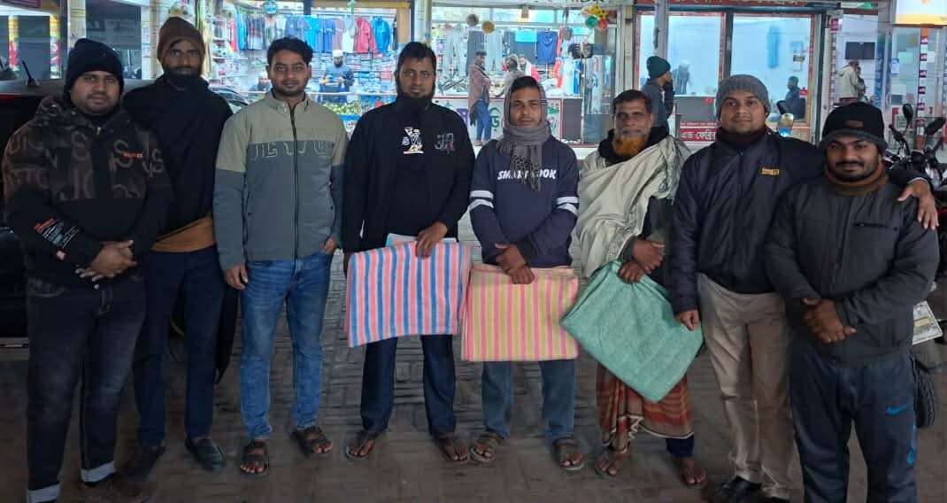 শেরপুরে পত্রিকার হকারদের মাঝে আজকের তারুণ্যের শীতবস্ত্র বিতরন