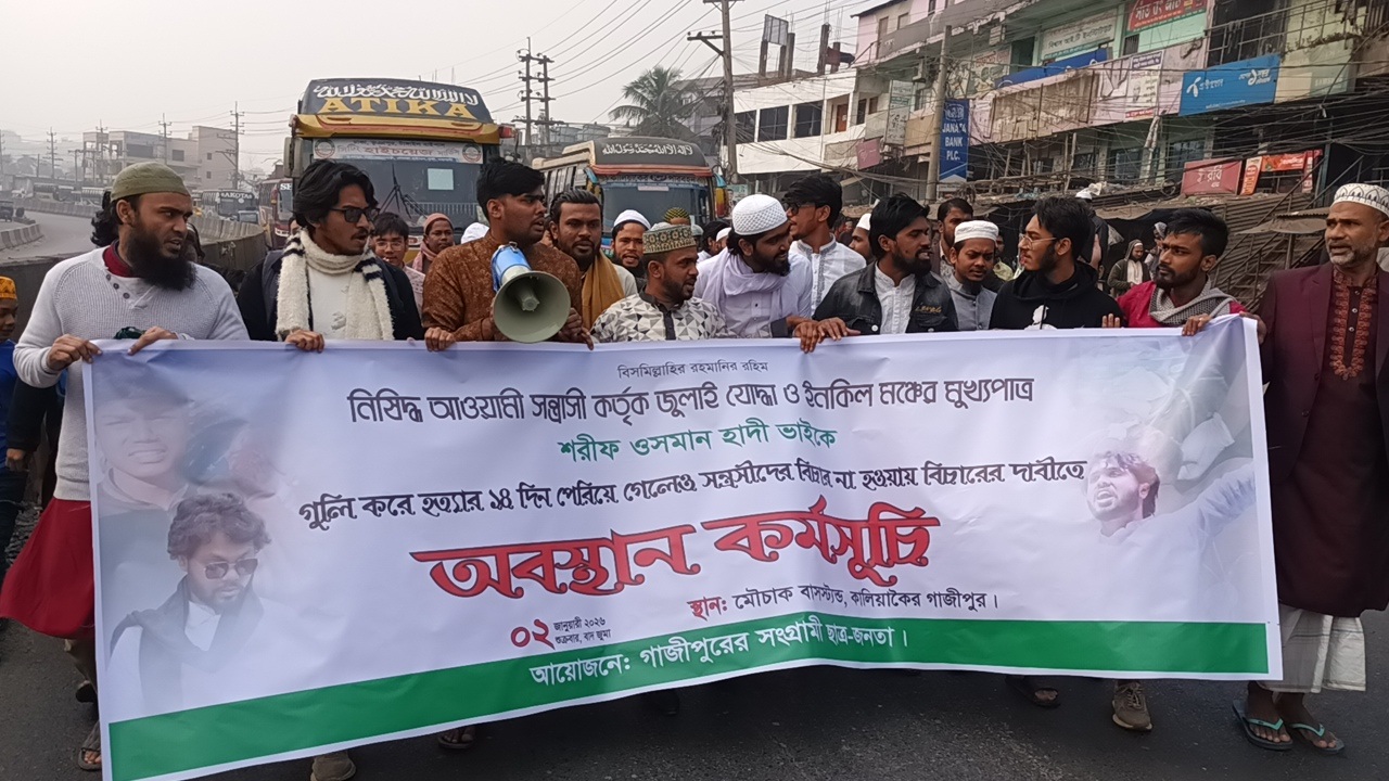 কালিয়াকৈরে হাদির হত্যার বিচারের দাবিতে বিক্ষোভ ও অবস্থান কর্মসূচী পালন