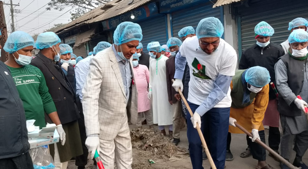 ঝাড়ু হাতে পৌরশহর পরিস্কার করলেন ব্যারিস্টার সালেহী এমপি