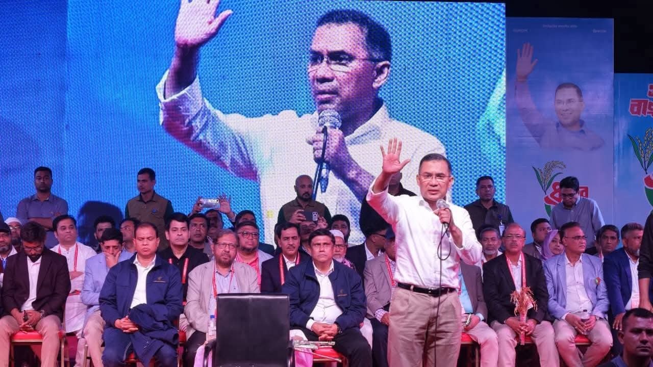 খুলনার জনসভা মঞ্চে তারেক রহমান