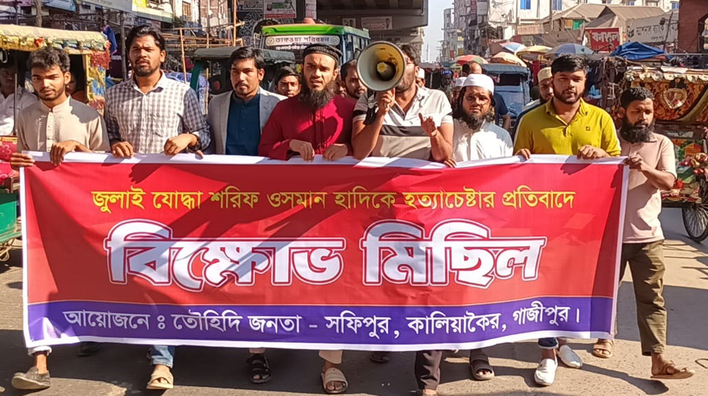 ইনকিলাব মঞ্চের মূখ্যপাত্র হাদির উপর হামলার প্রতিবাদে কালিয়াকৈরে বিক্ষোভ মিছিল