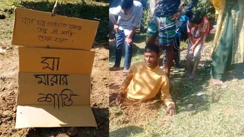 গাজীপুরে মায়ের উপর নির্যাতন, ছেলেকে মাটিতে পুঁতে দিল ক্ষুব্ধ জনতা