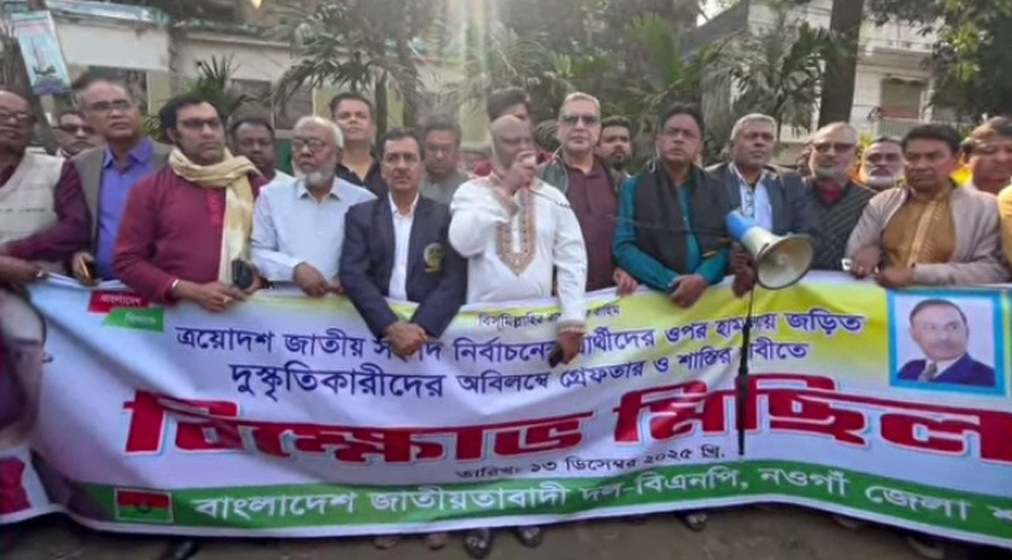 প্রার্থীদের ওপর হামলার প্রতিবাদে নওগাঁ জেলা বিএনপির বিক্ষোভ মিছিল