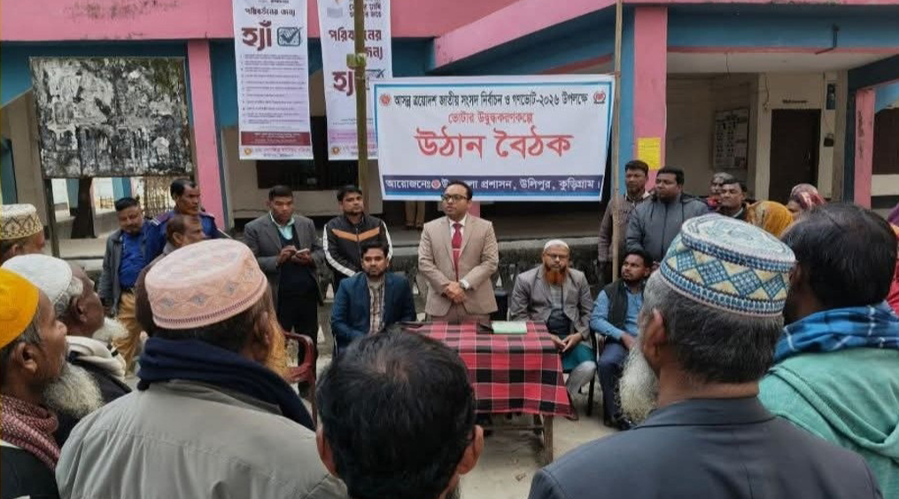 উলিপুরে ত্রয়োদশ জাতীয় সংসদ নির্বাচন ও গণভোট দেয়া উদ্বুদ্ধকরণকল্পে উঠান বৈঠক অনুষ্ঠিত