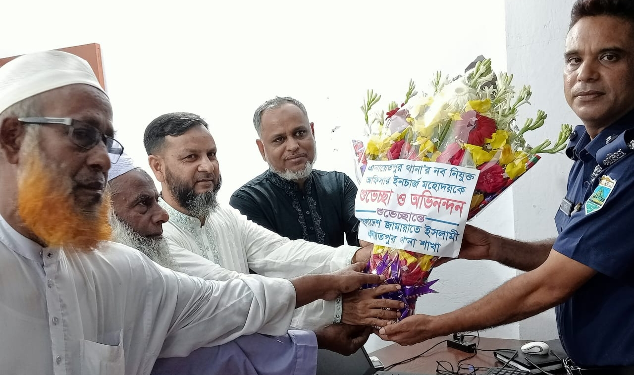 এনায়েতপুর থানা পুলিশকে ফুল দিয়ে বরণ করলেন জামায়াত নেতারা