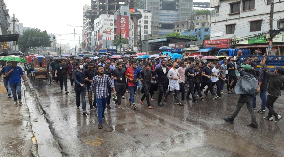 বৃষ্টিতে ভিজেই ব্র্যাক ও ইস্ট ওয়েস্টের শিক্ষার্থীদের গণমিছিল