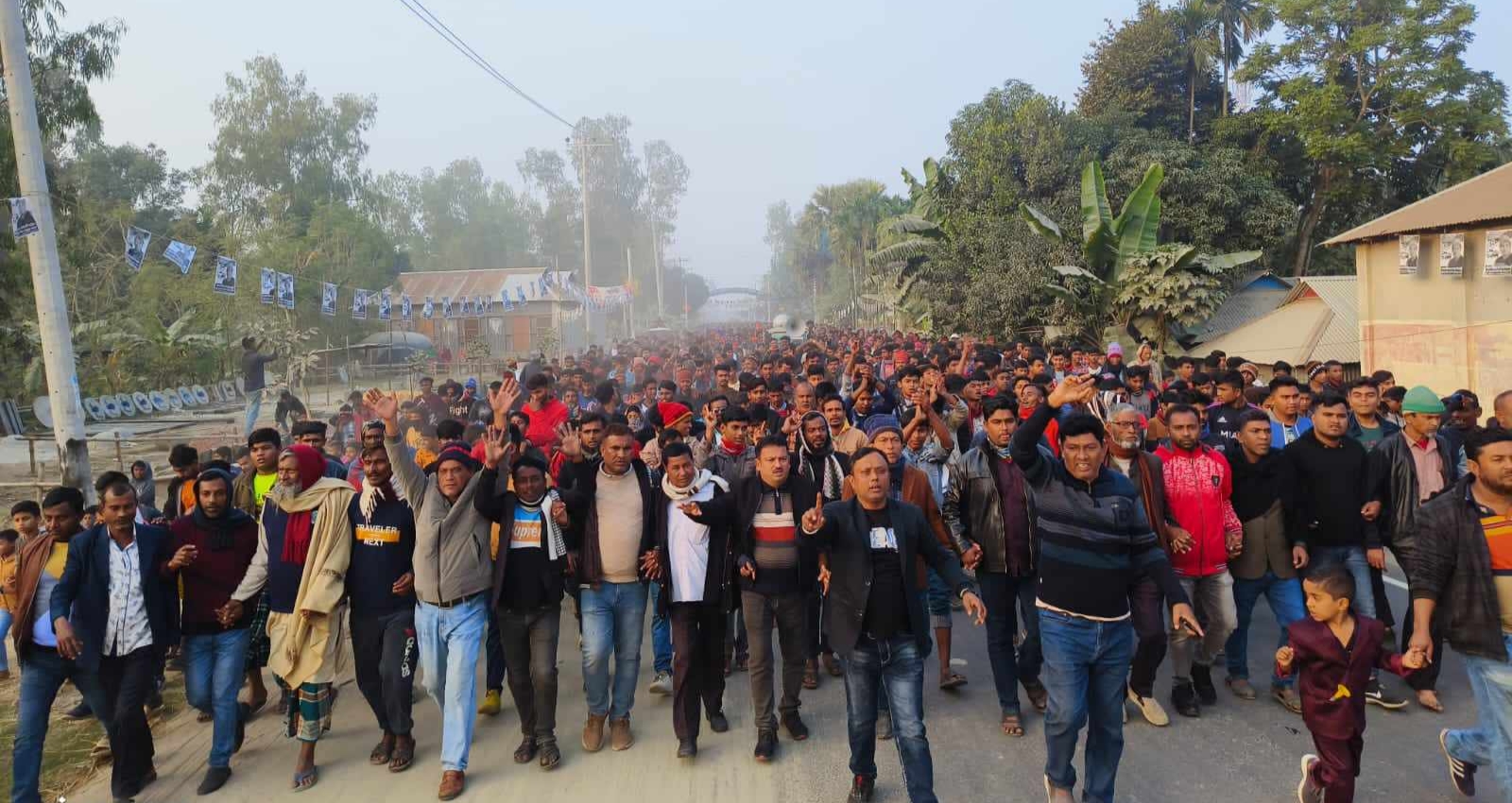 নওগাঁ-৫ আসনে বিএনপির মনোনয়নপ্রত্যাশী ধলুর পক্ষে নেতাকর্মীদের শোডাউন