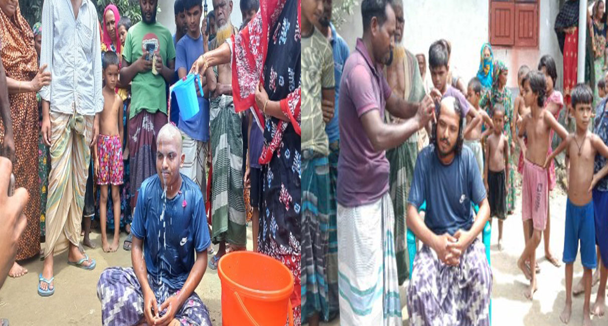 প্রেমে ব্যর্থ হয়ে মাথা ন্যাড়া করে দুধ দিয়ে যুবকের গোসল