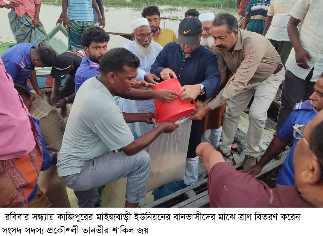 কাজিপুরে বন্যার্তদের মাঝে ত্রাণ দিলেন এমপি জয়