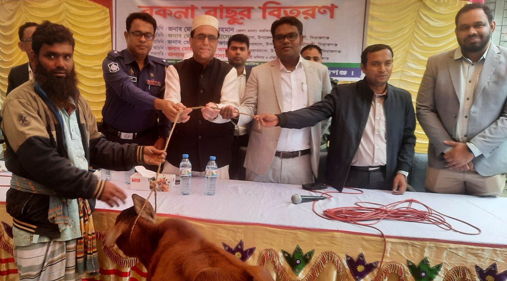 চৌহালীতে জেলেদের মাঝে বকনা বাছুর বিতরণ