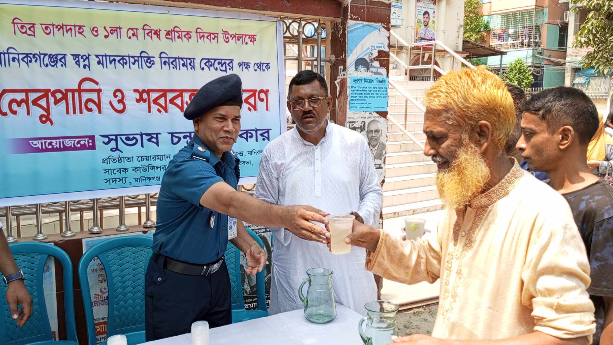 রায়গঞ্জে শ্রমজীবীদের মাঝে পানি ও খাবার স্যালাইন বিতরণ