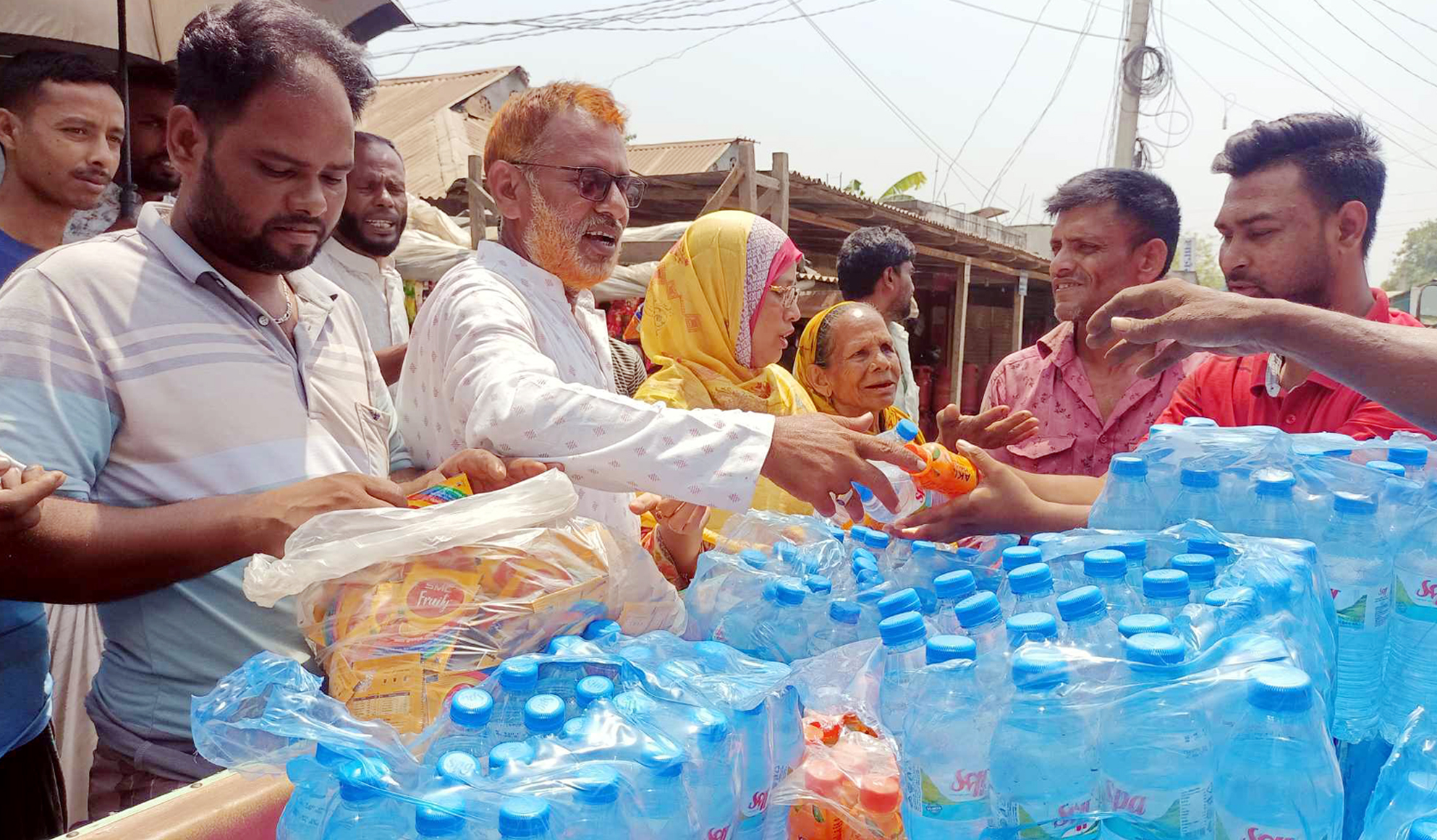 তীব্র গরমে স্বস্তি দিতে শেরপুরের নিম্ন আয়ের মানুষদের মাঝে স্বেচ্ছাসেবী সংগঠন আজকের তারুণ্য