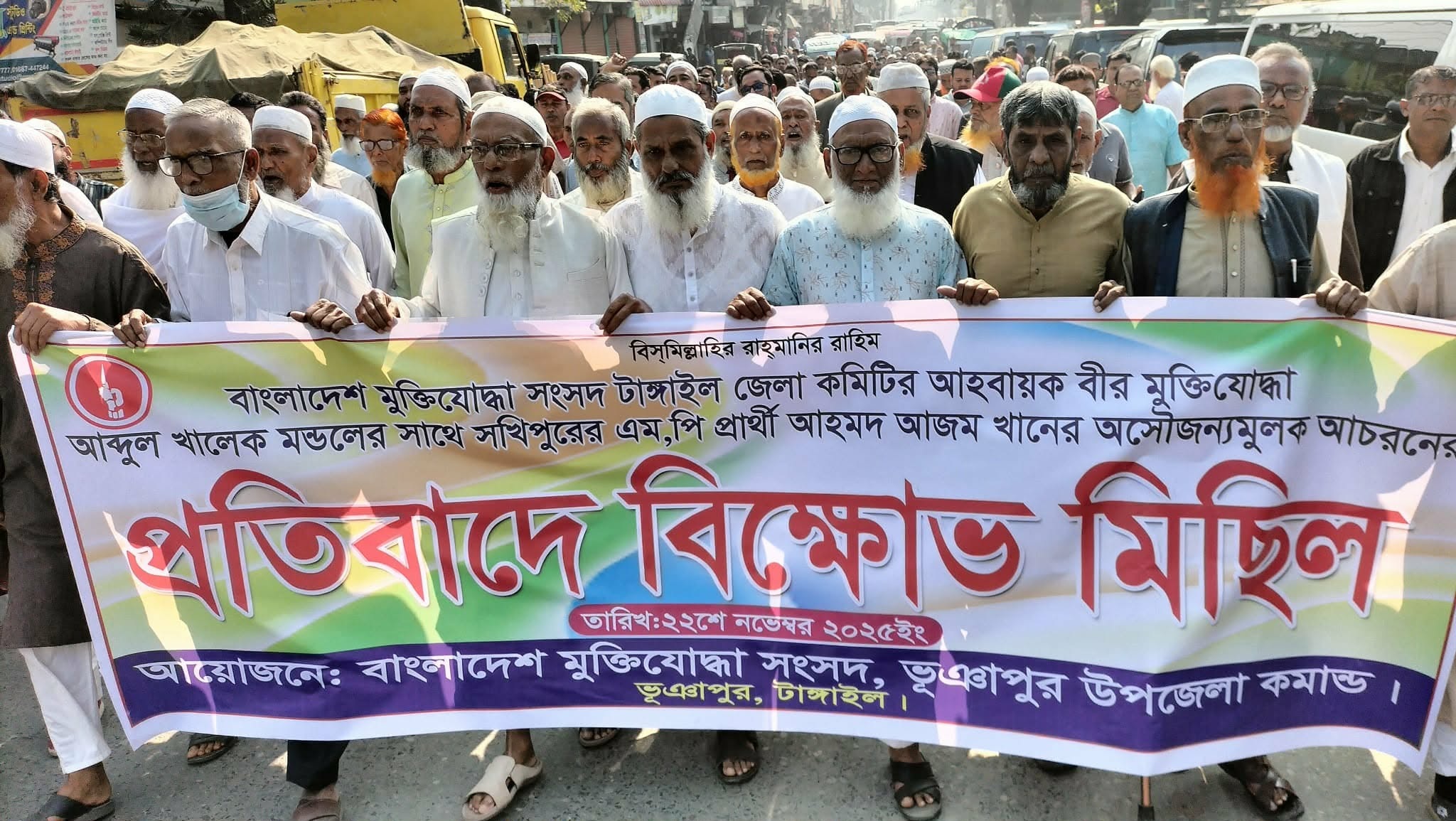 ভূঞাপুরে মুক্তিযোদ্ধাদের মানববন্ধন ও প্রতিবাদ সমাবেশ