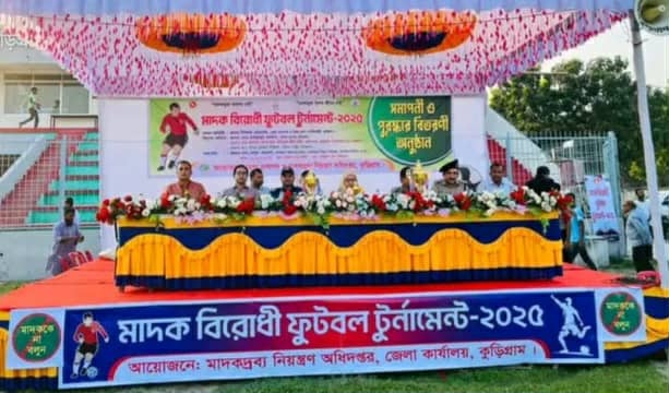 কুড়িগ্রামে মাদকবিরোধী ফুটবল টুর্নামেন্টের ফাইনাল ম্যাচ অনুষ্ঠিত