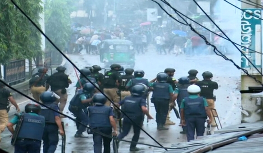 উত্তরায় ছাত্র আন্দোলনের গণমিছিলে শিক্ষার্থীদের সঙ্গে পুলিশের সংঘর্ষ