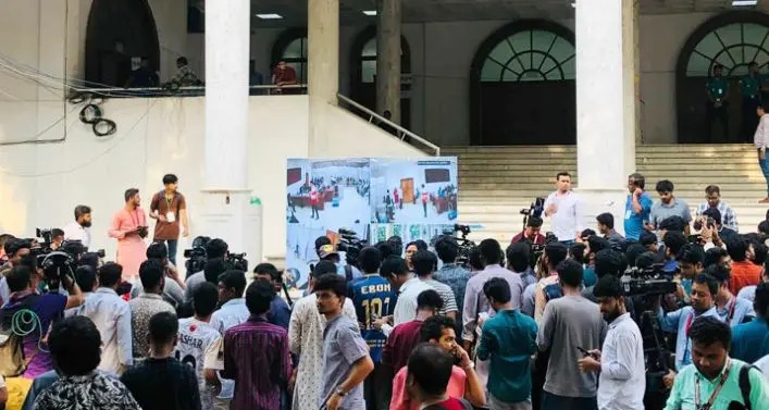 ডাকসুর ভোট গণনা চলছে, এলইডি স্ক্রিনে দেখছেন শিক্ষার্থীরা