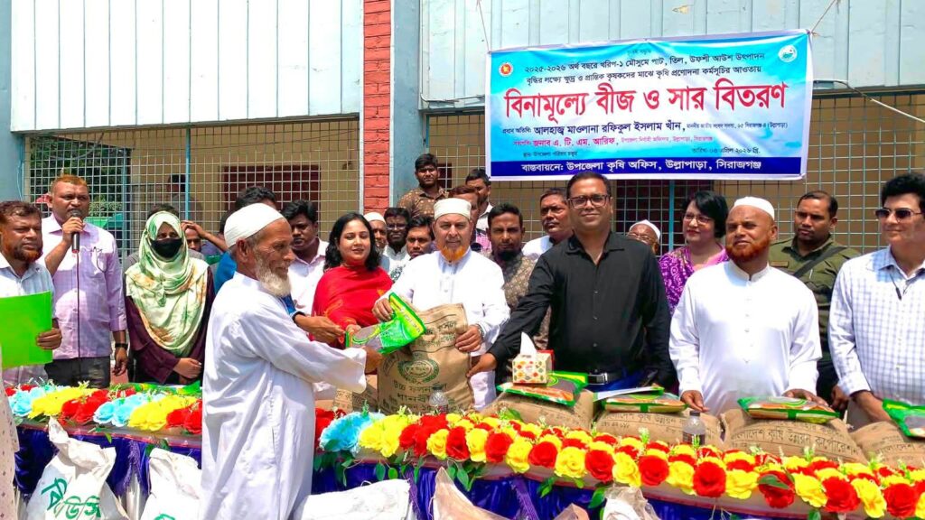 উল্লাপাড়ায় ৬৩০ কৃষকের মাঝে বিনামূল্যে বীজ ও সার বিতরণ